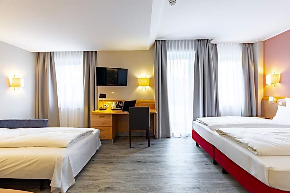 After a day of exploring the vibrant city of Bremen, you can relax and unwind in one of the comfortable and well-appointed rooms at Novum Hotel Garden. Choose from a variety of room types to suit your needs, whether you're traveling solo, as a couple, or with the whole family. The Quadruple Room is perfect for families, accommodating up to 4 adults and 1 child with 1 twin bed, 1 double bed, and 1 sofa bed. For solo travelers, the Single Room or Economy Single Room provides a cozy space with a twin bed, while the Double Room is ideal for couples with 2 twin beds and 1 sofa bed.